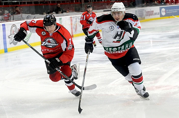 Матч высшей хоккейной лиги между командами ХК "Донбасс" Донецк и "Нефтяник" Альметьевск.