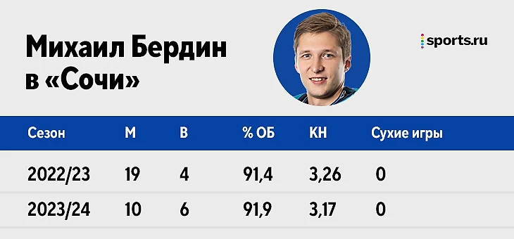 Бердин тащит нынешний «Сочи» – сенсационный скачок команды в том числе и его заслуга. При этом цифры не так уж и отличаются от того, что было в прошлом сезоне, но только сейчас к вратарю нет никаких вопросов. Если он пропустил – значит, по-другому быть не могло.