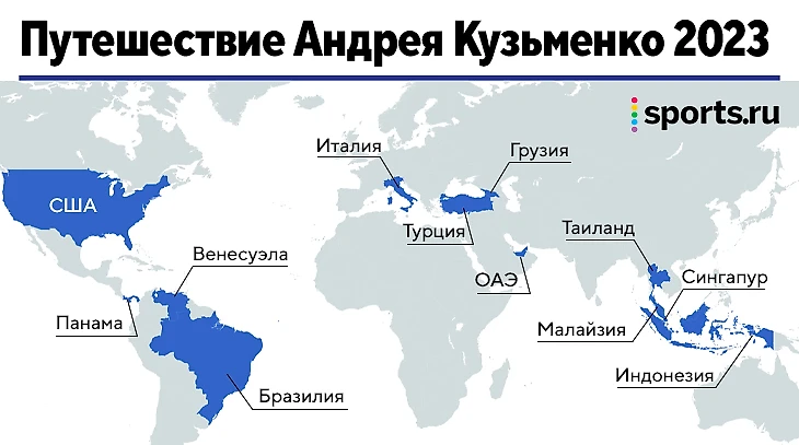 За лето Кузьменко посетил 15 стран. В соцсетях есть фото из Венесуэлы, Бразилии, Грузии, ОАЭ, Индонезии, Таиланда, США и Италии. В интервью Sportsnet хоккеист также упоминал Панаму, Турцию, Сингапур и Малайзию. Еще три под вопросом.