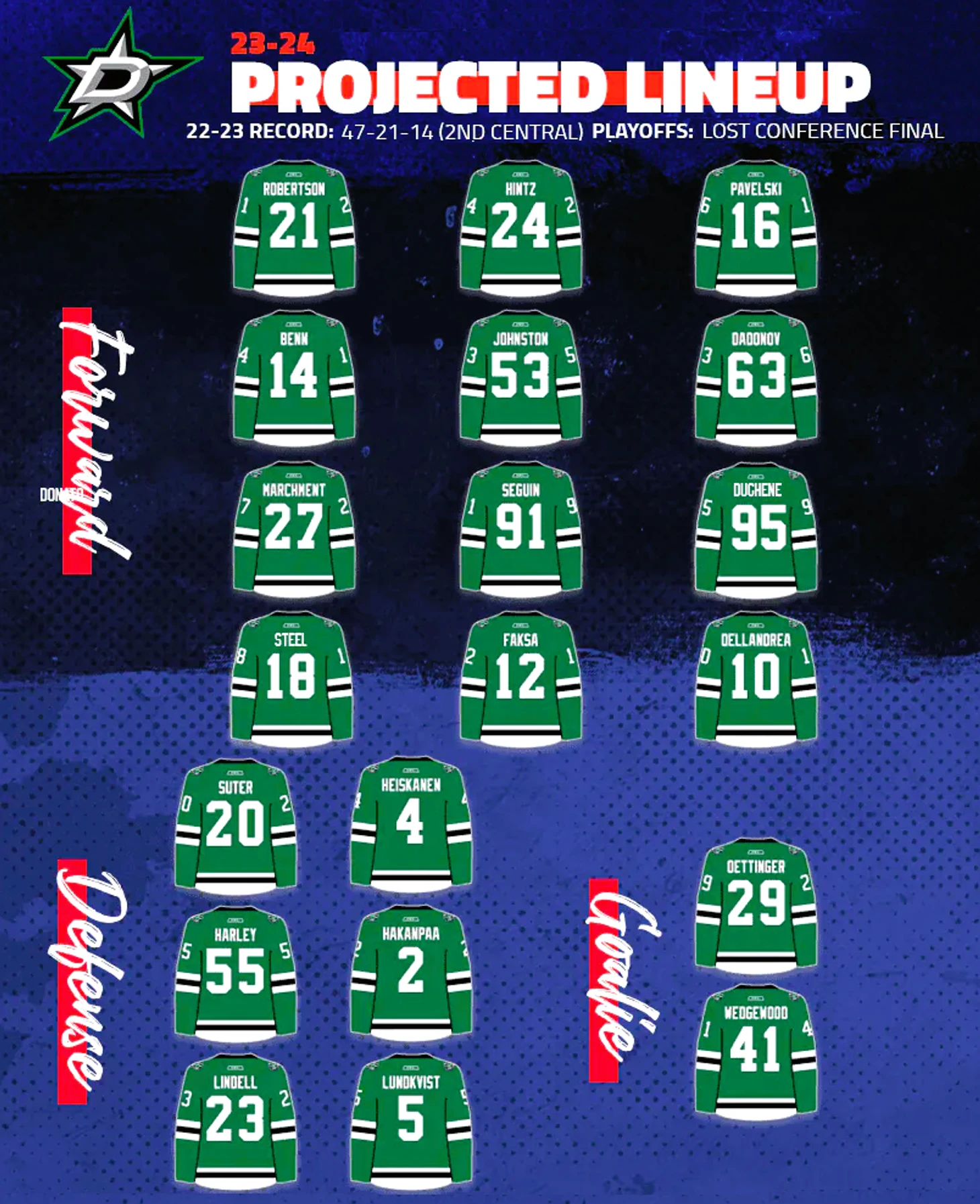 Даллас располагает, возможно, самым сбалансированным и сильным составом во всей лиге. К тому же, уже сыгранным и прошедшим кубковые испытания в прошлом розыгрыше плей-офф, остановившись в шаге от финала.