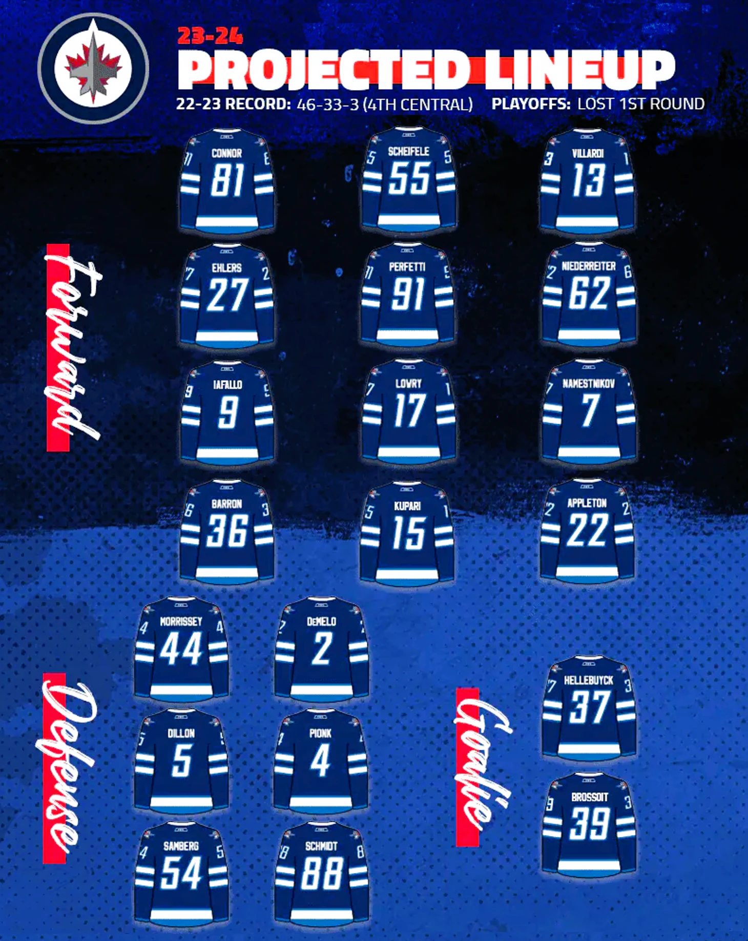 Если в скором времени клуб все-таки покинут бессменный вратарь Хеллибак и Шайфли, а раннее ушел Уилер, то из привычной всем версии Виннипега остаются Коннор, Элерс, Лаури и Моррисси.