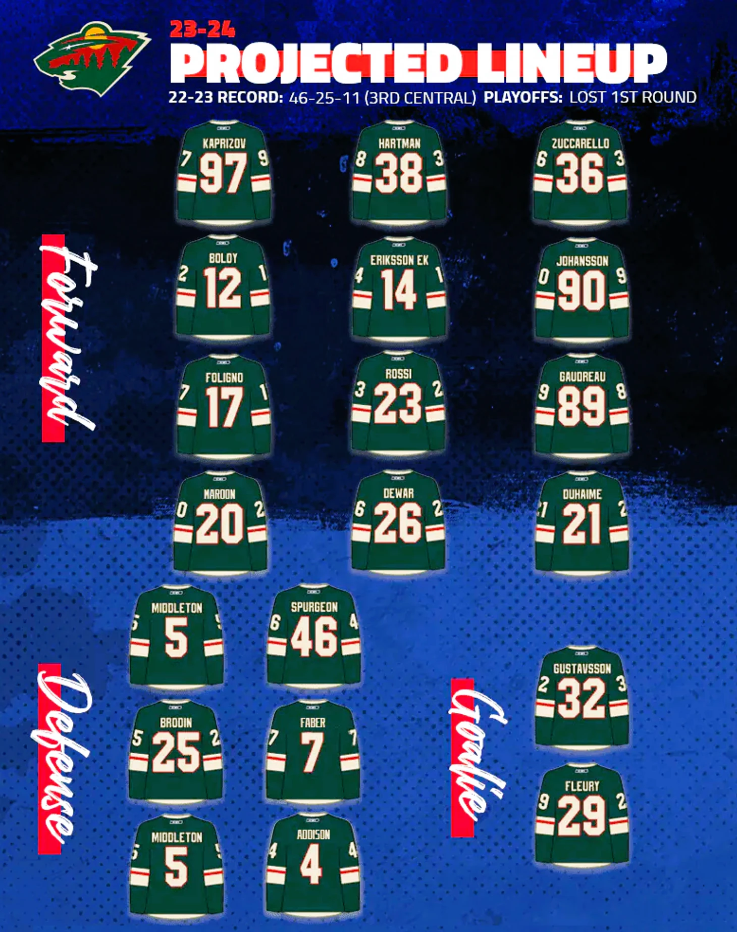 👎 Минус: Генменеджер Билл Герин раздавал щедрые контракты и продлевал проверенных игроков. Например, опытного 36-летнего Матса Цуккарелло (2 года, 4.12 млн), чтобы Капризову было с кем разыгрывать в атаке. Но в то же время фронт-офис «Уайлд» совсем забыли про какое-либо усиление состава. В отличие от предыдущих сезонов и привычных сложностей с потолком зарплат, на этот раз обошлись символическими подписаниями для четвертого звена.
