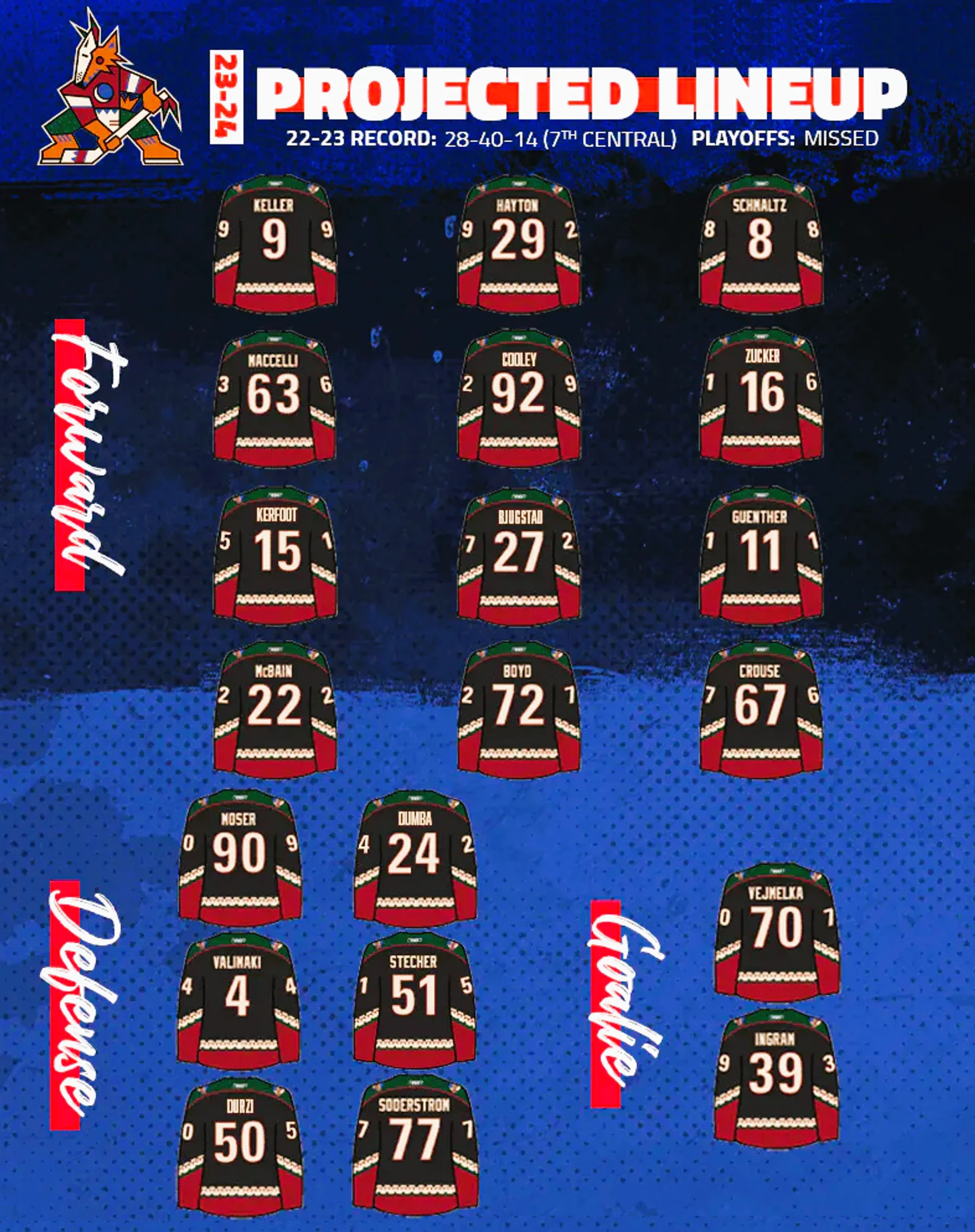 👎 Минус: Не берем сложных организационных вопросов, привычно связанных с проблемным клубом, а основные сложности по сезону могут возникнуть в линии обороны, причем для всех защитников «Койотс» предстоящий сезон станет контрактным, даже для новичков Шона Дурзи и Мэтта Дамбы – сразу у восьми игроков защиты летом заканчиваются контракты