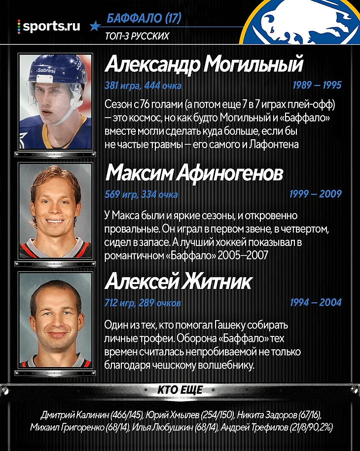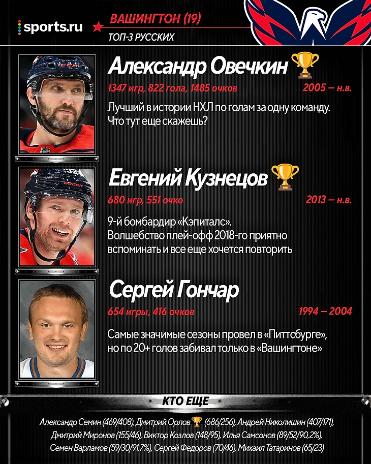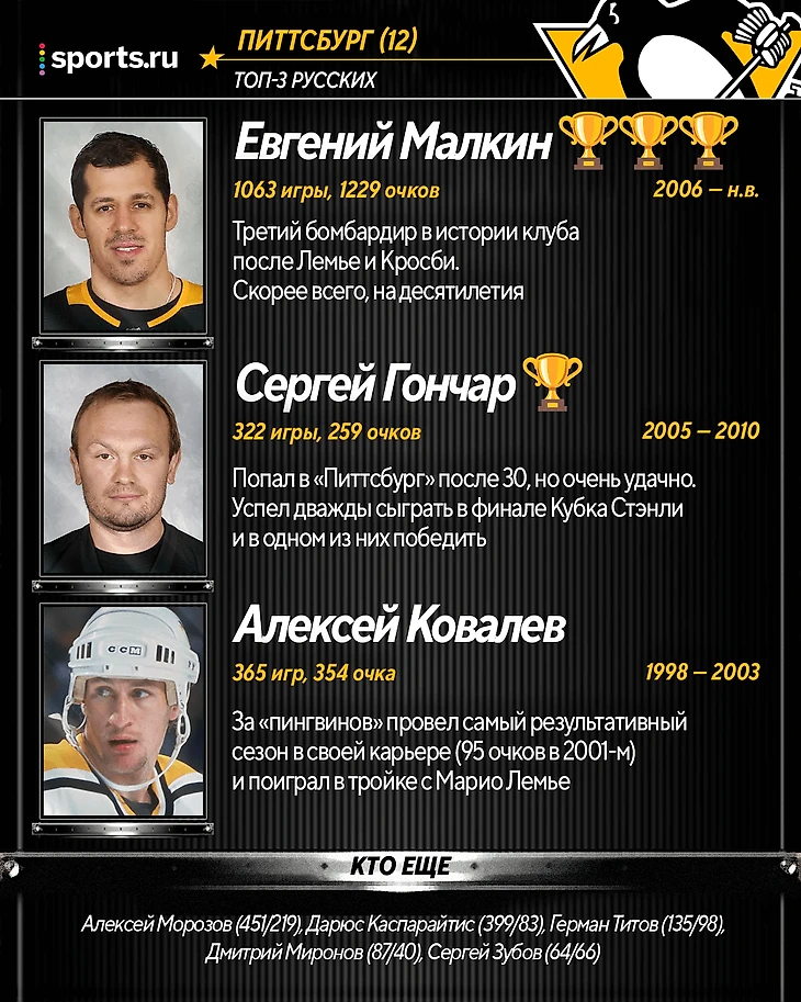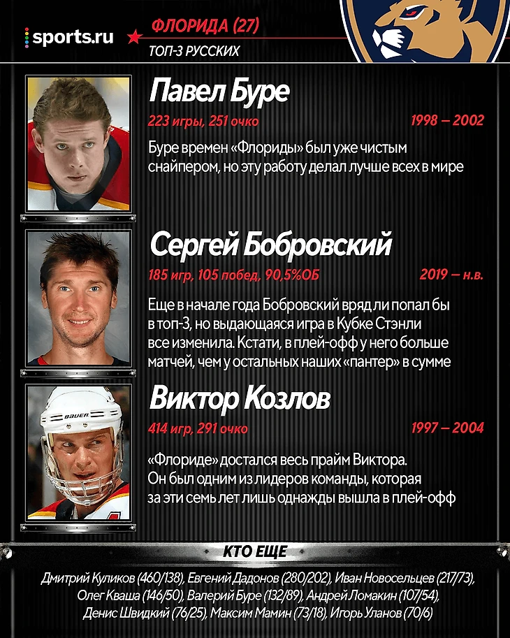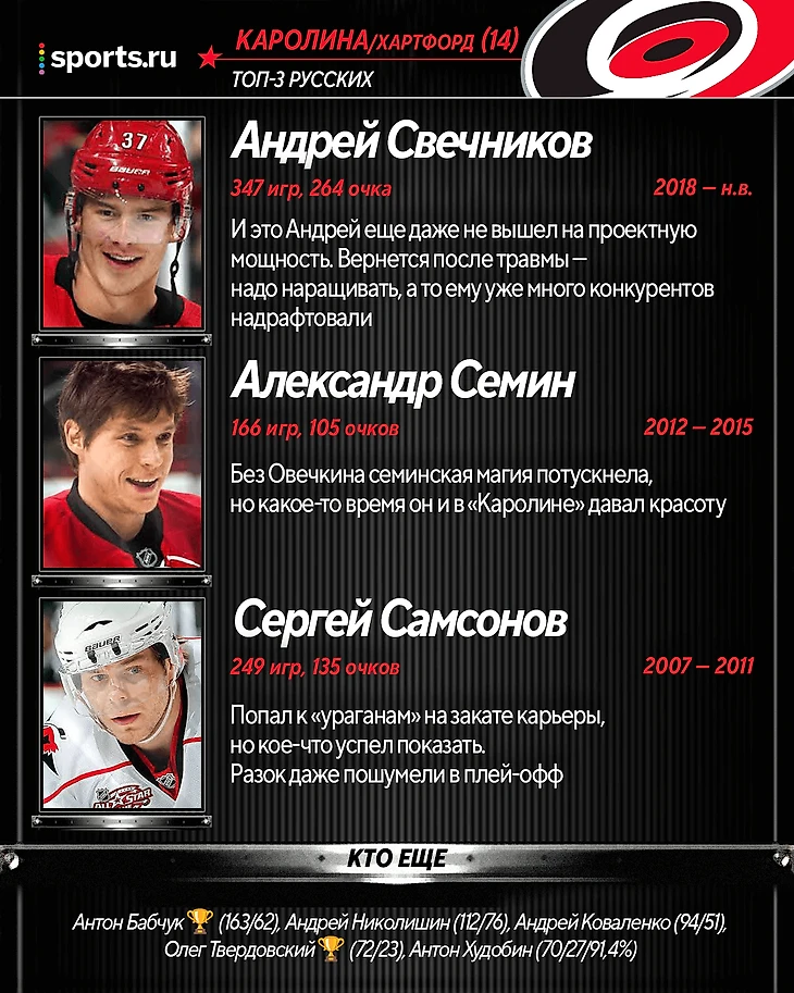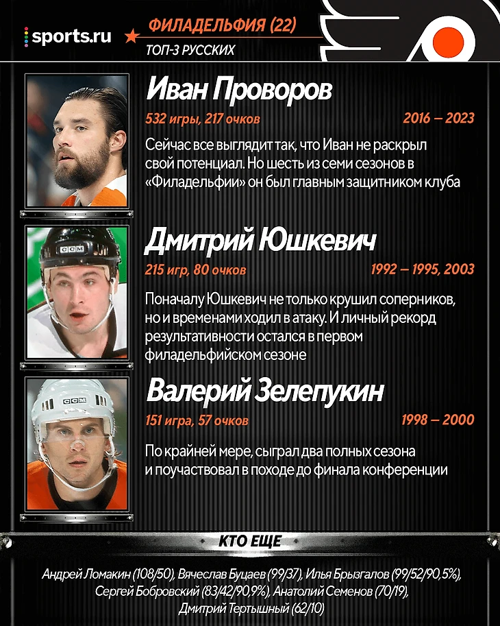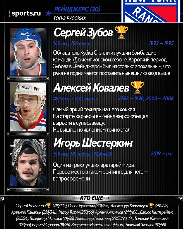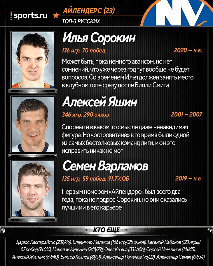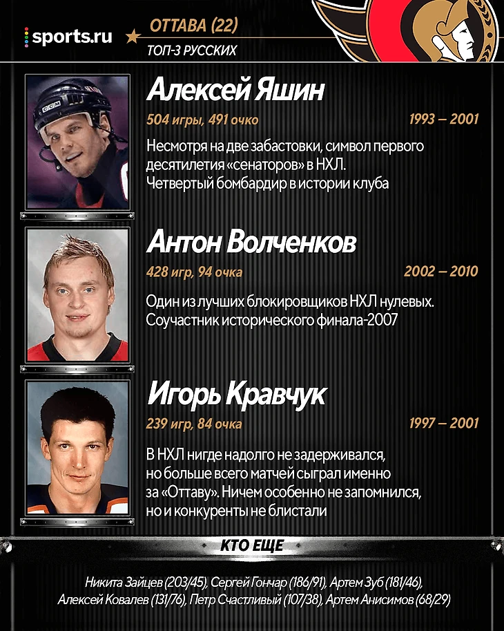 ● по критериям все просто: больше одного полного сезона для топ-3 (поэтому «Ванкувер» пока без Кузьменко) и минимум 60 матчей для упоминания среди остальных. Исключения будут, но только в особых случаях.