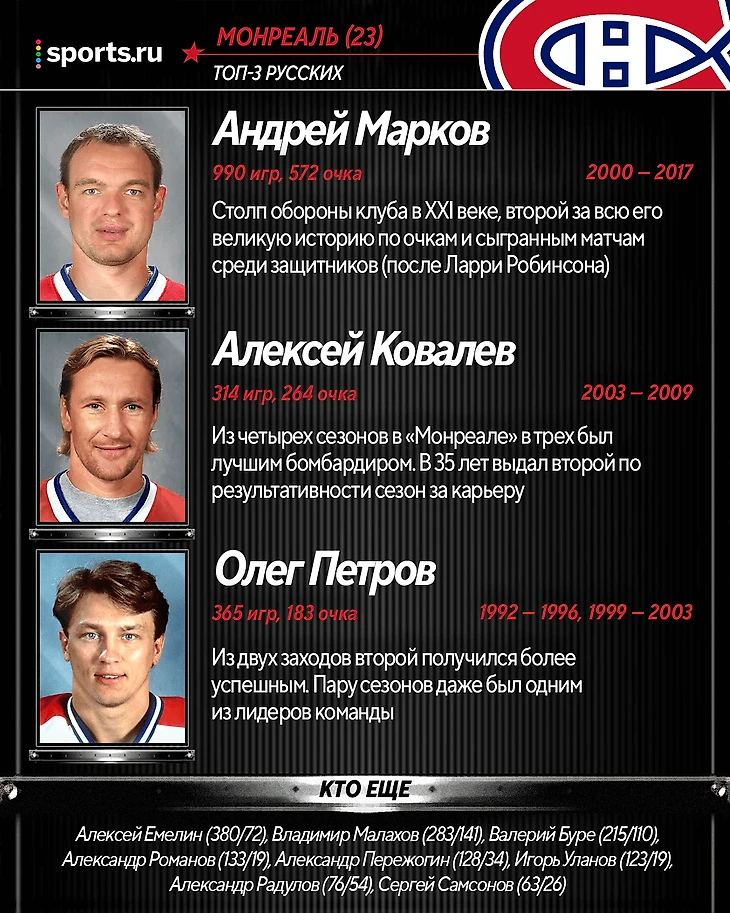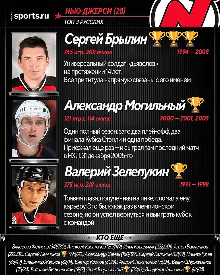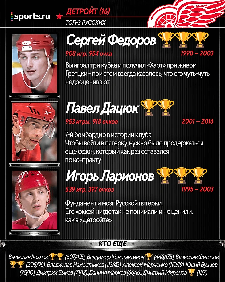 Привет! На связи рубрика топ-3 чего-то исторически-ностальгического. За считанные часы до старта сезона в НХЛ мы будем вспоминать, спорить и обсуждать лучших представителей России по-ко-манд-но. Штука не очень честная, потому что где-то наших было совсем мало («Миннесота», ау, вы чем вообще заслужили Капризова?), где-то побольше, а где-то прям так много, что глаза разбегаются (Миша Сергачев в «Тампе», видимо, должен наиграть на «Норрис», чтобы подвинуть Хабибулина). И, конечно, полностью субъективная (Дарюс, без обид). Но тут ничего не поделаешь – зато весело.
