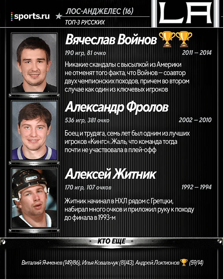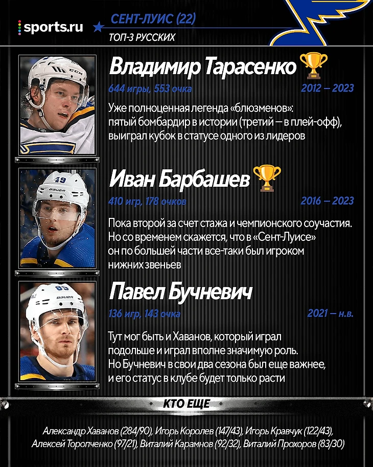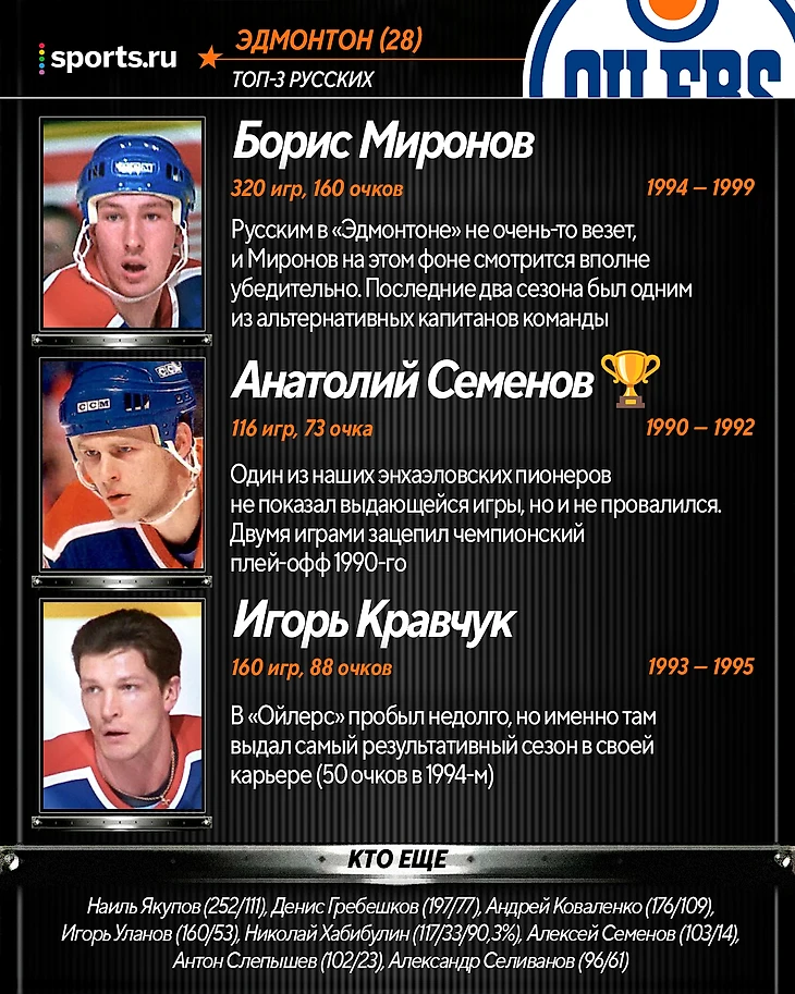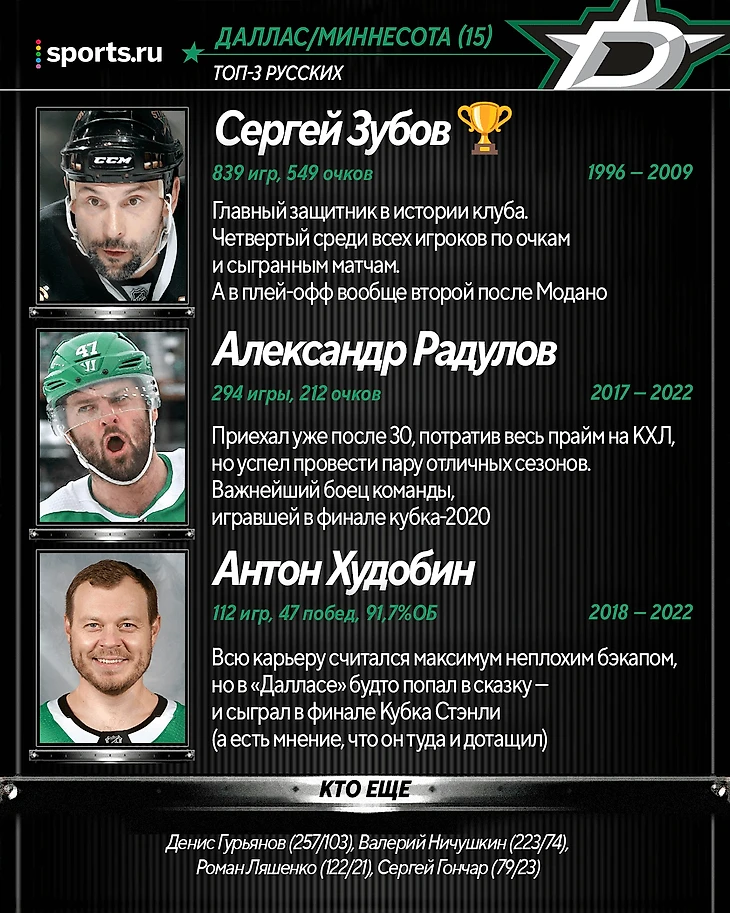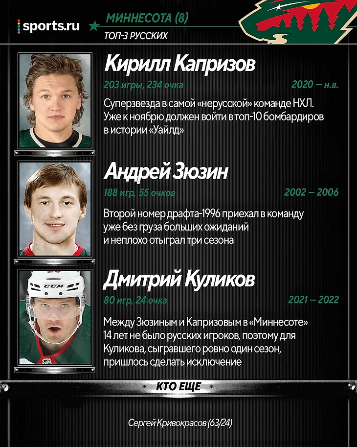 ● по критериям все просто: больше одного полного сезона для топ-3 (поэтому «Ванкувер» пока без Кузьменко) и минимум 60 матчей для упоминания среди остальных. Исключения будут, но только в особых случаях.