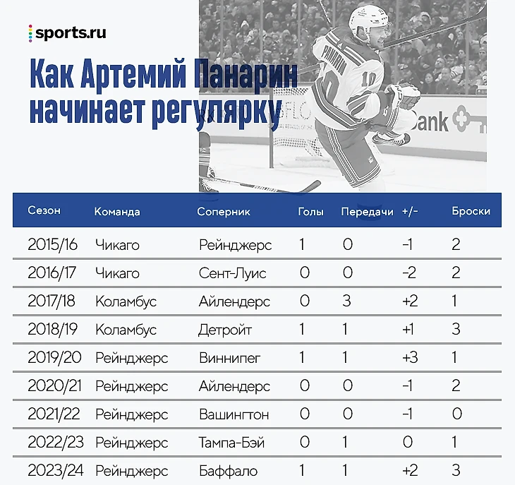Панарин провел лучшую свою игру на старте сезона за последние годы. В «Рейнджерс» он не всегда начинает так ярко – что-то похожее в последний раз было в 2019 году против «Виннипега».