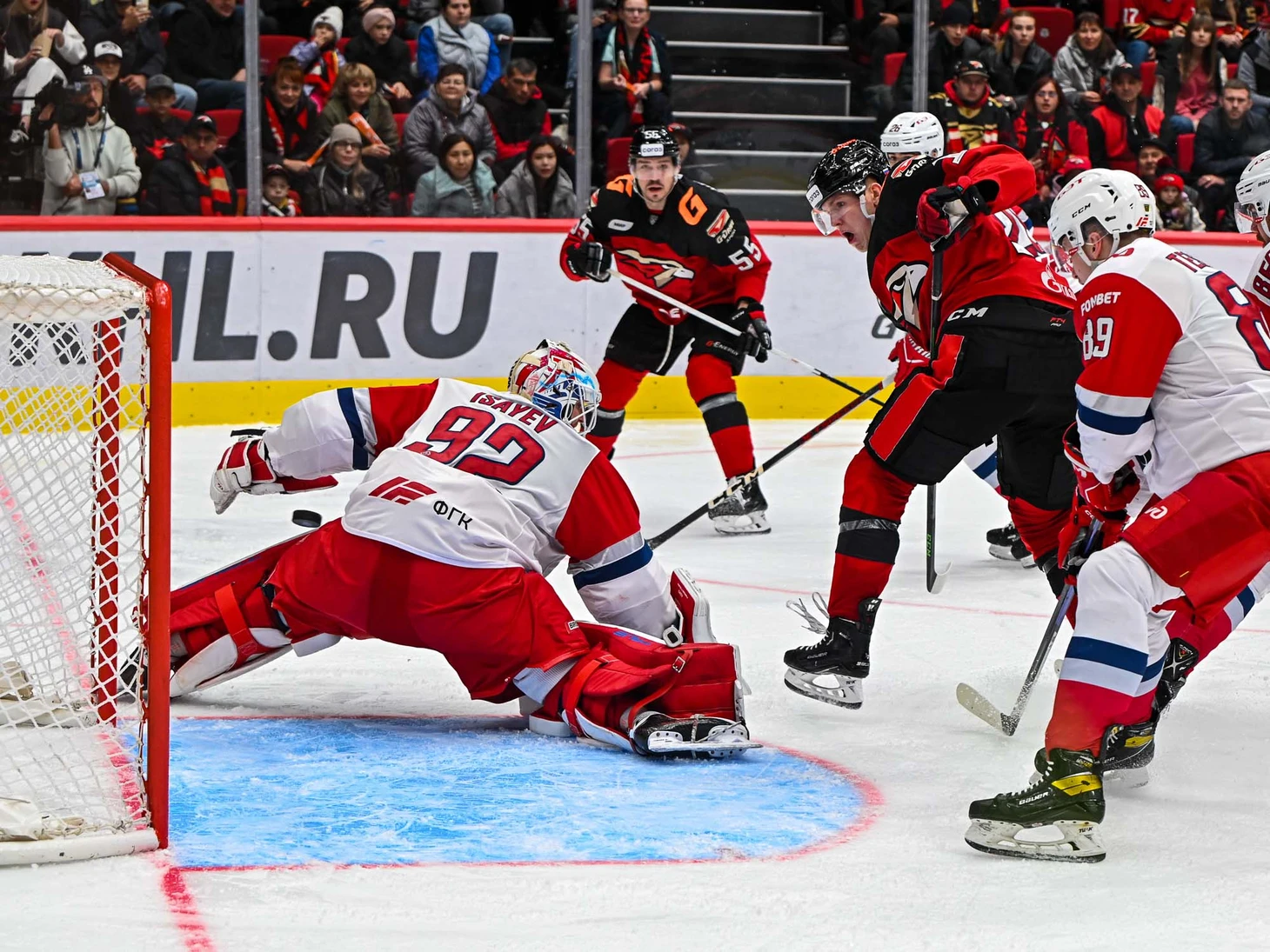 Матч начался идеально для «Локомотива». Команда бежала вперёд создавала и накрывала соперника. Первый период закончился со счётом 0:1. Хотя если бы не чудо Ильи Проскурякова, который в 36 лет выдаёт матч за матчем на топовом уровне, счёт явно был бы больше.