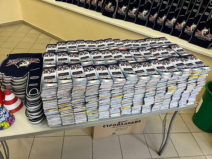 «Нефтехимик» празднует свой большой юбилей - хоккейному клубу исполняется 55 лет. В честь этого события для зрителей подготовили праздничную программу и юбилейную атрибутику. Хедлайнером праздника стала группа «Банд'Эрос», которая исполнила хиты во время раскатки команд.