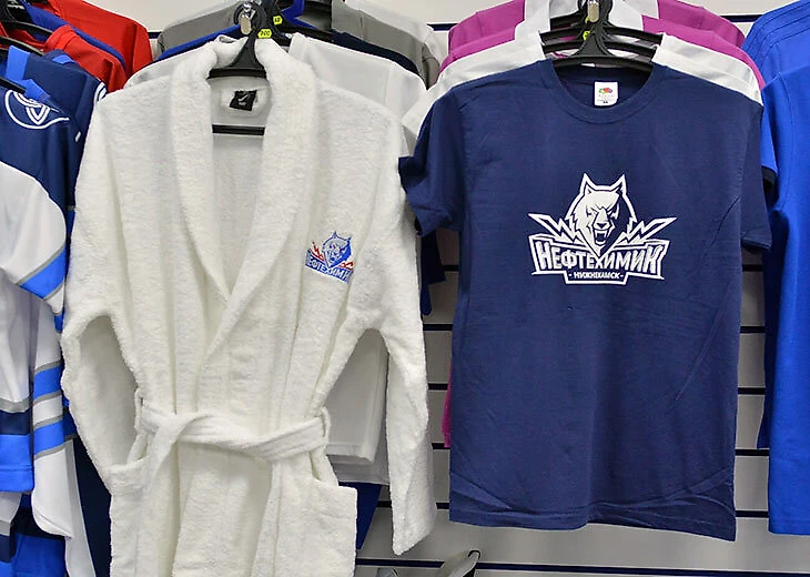 Вместе с аксессуарами «Нефтехимика» здесь реализуют мерч Михаила Сергачева – двукратного обладателя Кубка Стэнли в составе «Тампы» и воспитанника нижнекамского хоккея. Доставка не предусмотрена даже по городу. Ознакомиться с ассортиментом можно в группе «ВКонтакте»; самый необычный товар на прилавке – белый халат с эмблемой клуба.