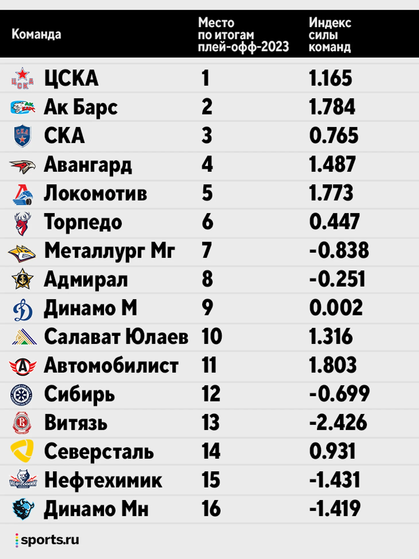 Чтобы оценить влияние нововведений на непредсказуемость плей-офф и прикинуть исходы в каждой из получившихся пар, нам потребуется инструмент – который мы назовем «Индексом силы команды». Для его расчета будем использовать статистику прошедшего розыгрыша плей-офф.