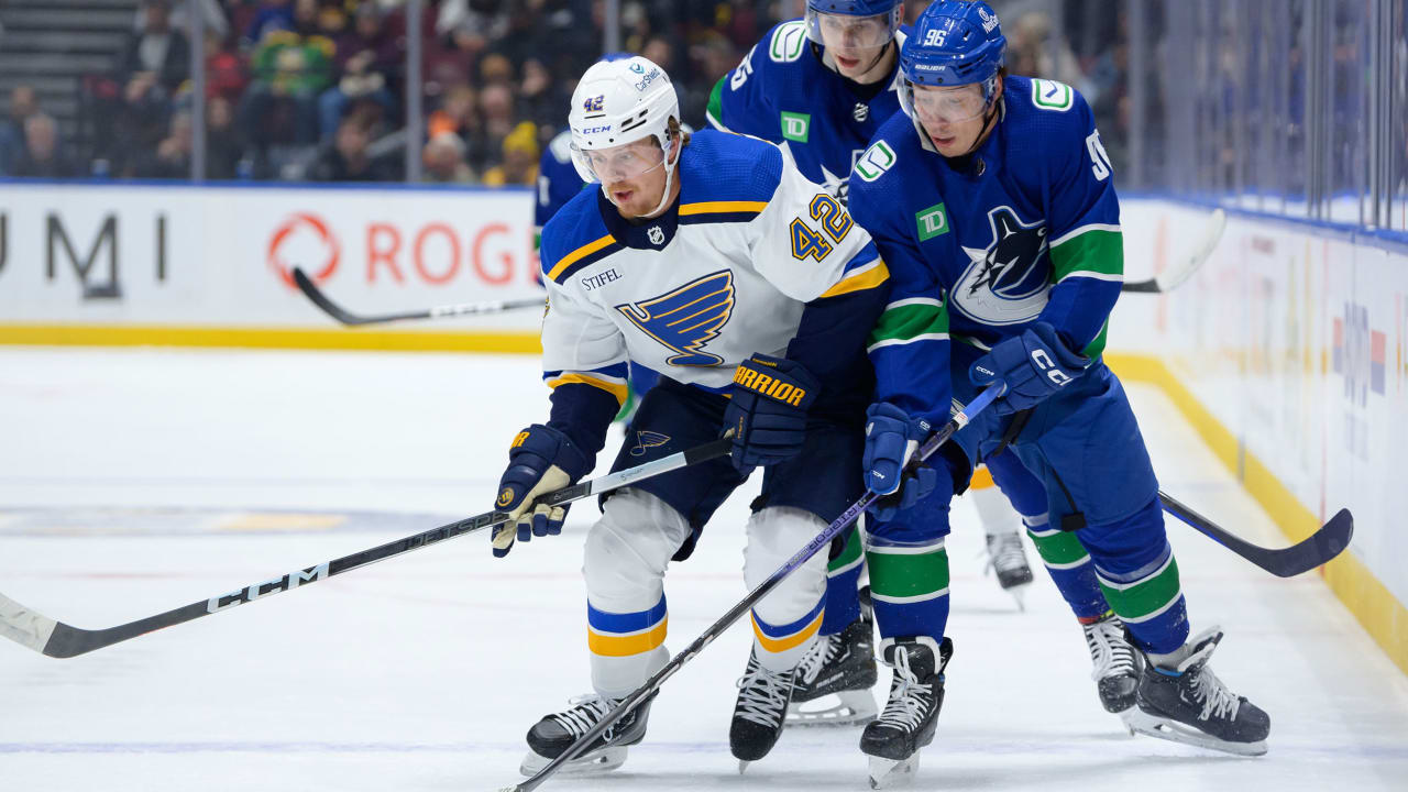 "Ванкувер Кэнакс"-"Сент-Луис Блюз" 5:0. Джей-Ти Миллер набрал 3 очка (1+2), Куинн Хьюз забросил 2 шайбы, Элиас Петтерссон отдал 2 результативные передачи, Илья Михеев забросил одну шайбу, Андрей Кузьменко отдал результативную передачу, Тэтчер Демко отразил 22 броска и сыграл первую сухую игру в сезоне.