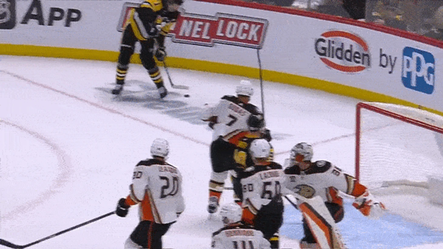 Сид имел роскошный шанс отличиться и сам – Малкин выдал ему пас-конфетку при счете 1:1 в самом конце первого периода (да, вновь в большинстве!), но Гибсон потрясающим движением клюшки спас «Анахайм»: