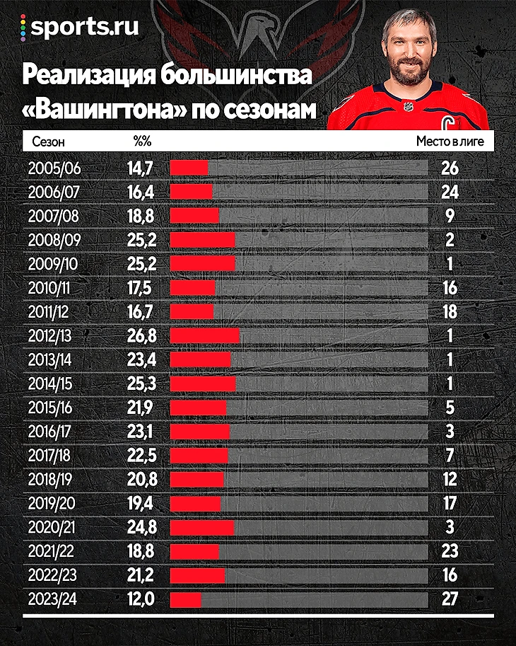 И еще мы точно знаем, что «Вашингтон» – лучший в НХЛ по реализации большинства за период с 2005 года, когда в команде появился Овечкин, до наших дней (20,7%).