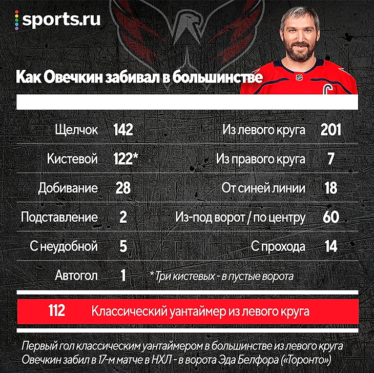 Овечкин забил в большинстве больше всех (извините, но такая тавтология неизбежна), он много играет в большинстве, но его историческая результативность держится не только и даже не столько на этом. Однако это очень важная часть его карьеры, которую к тому же сегодня активно обсуждают. Так что поехали дальше.
