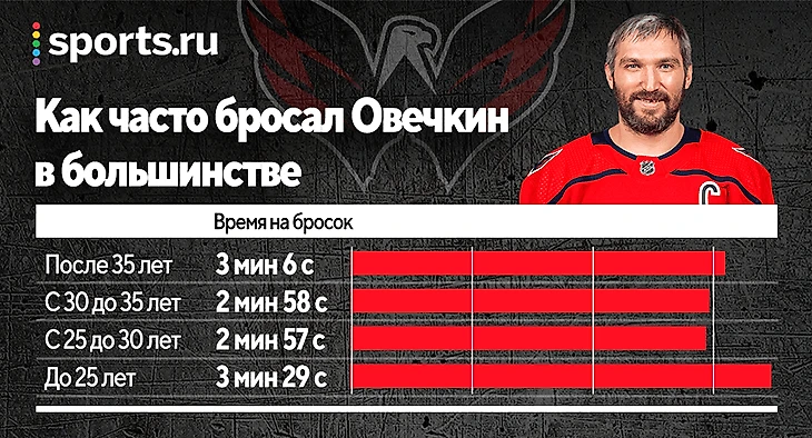 Честно говоря, я был уверен, что по крайней мере сейчас, когда Овечкину уже 38, в этом нет смысла. Чисто визуально мне казалось, что на второй минуте он выглядит еще тяжелее, и что это, скорее, вредит ему самому, его статистике и в конце концов команде и походу за рекордом Гретцки. Но цифры говорят обратное.
