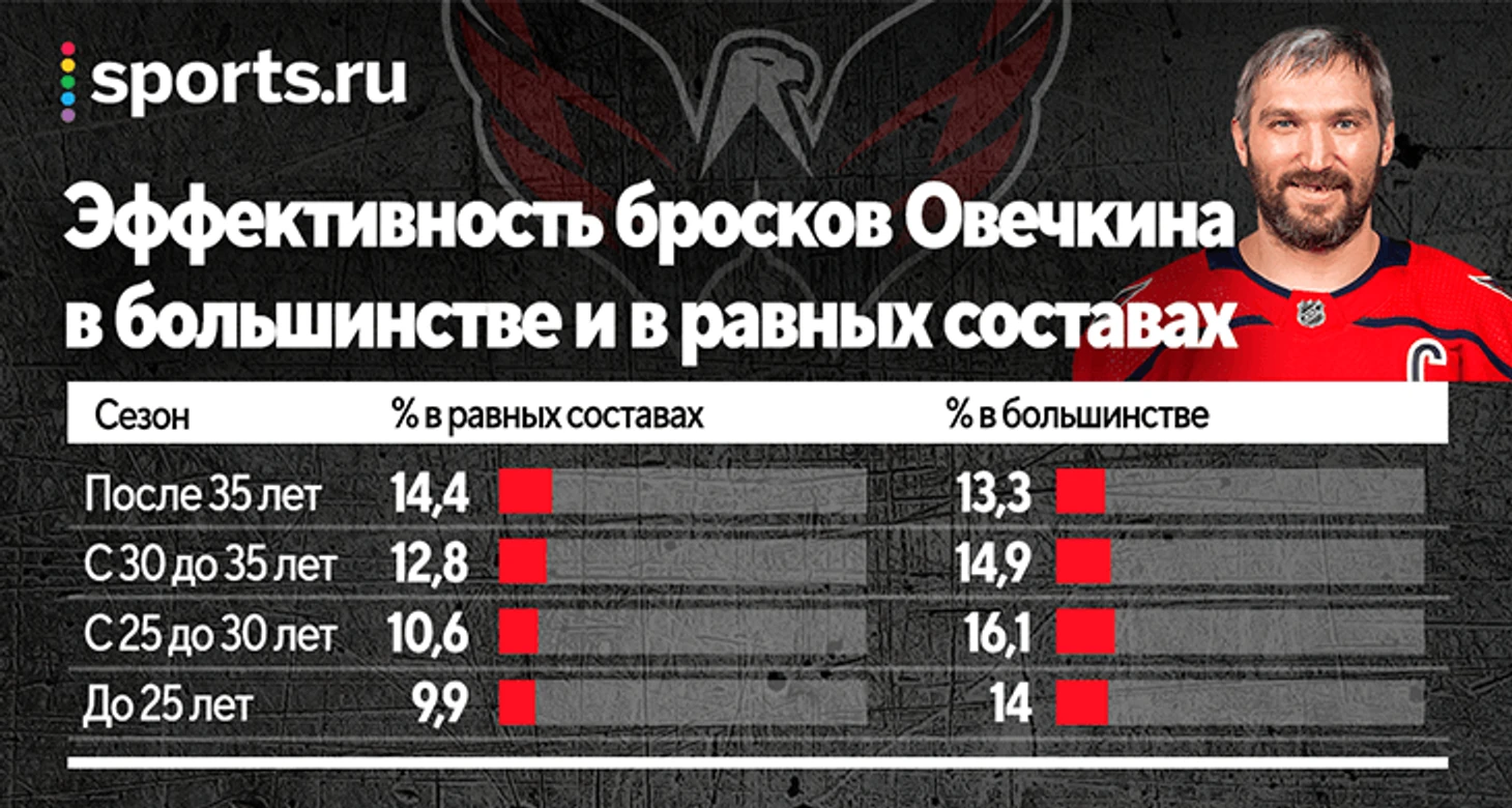 «В прошлом году он забил 42 гола и набрал 75 очков в 73 играх, что для некоторых является достаточным доказательством эффективности Овечкина. Но добиться этого гораздо проще, если вы проводите 95 процентов времени команды в большинстве. И если в большинстве у команды одна миссия – вывести Овечкина на бросок, даже если основная часть бросков будет средней».