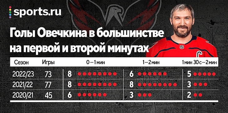 Принципиальной разницы в эффективности Овечкина на первой и второй минутах большинства нет. И в последние 30 секунд, когда, казалось бы, он уже должен еле стоять на ногах, Александр забивает регулярно. Да, я не смотрел, сколько на этом отрезке у него передач, сколько «Вашингтон» пропустил в большинстве (это все надо делать руками и отнимает адское количество времени). Но чисто по голам – эффективность Овечкина не проседает. В прошлом сезоне вообще больше трети своих голов в большинстве он забил в последние 30 секунд. Учитывая, что у «Вашингтона» не наблюдается толпы снайперов за спиной Овечкина, его двухминутные отрезки очевидно имеют смысл.