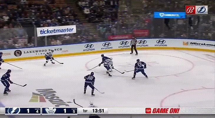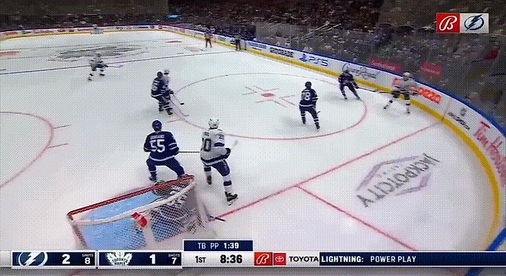 На контрасте с признанным снайперами Кучеров оставляет ощущение легкости от своего броска. Вот так – по сути, за счет движения ног – форвард вонзил первую шайбу в матче с «Торонто». Кажется, он опередил и соперников, и партнеров – перед передачей почти замер и просто ждал, когда комбинация дойдет до него.