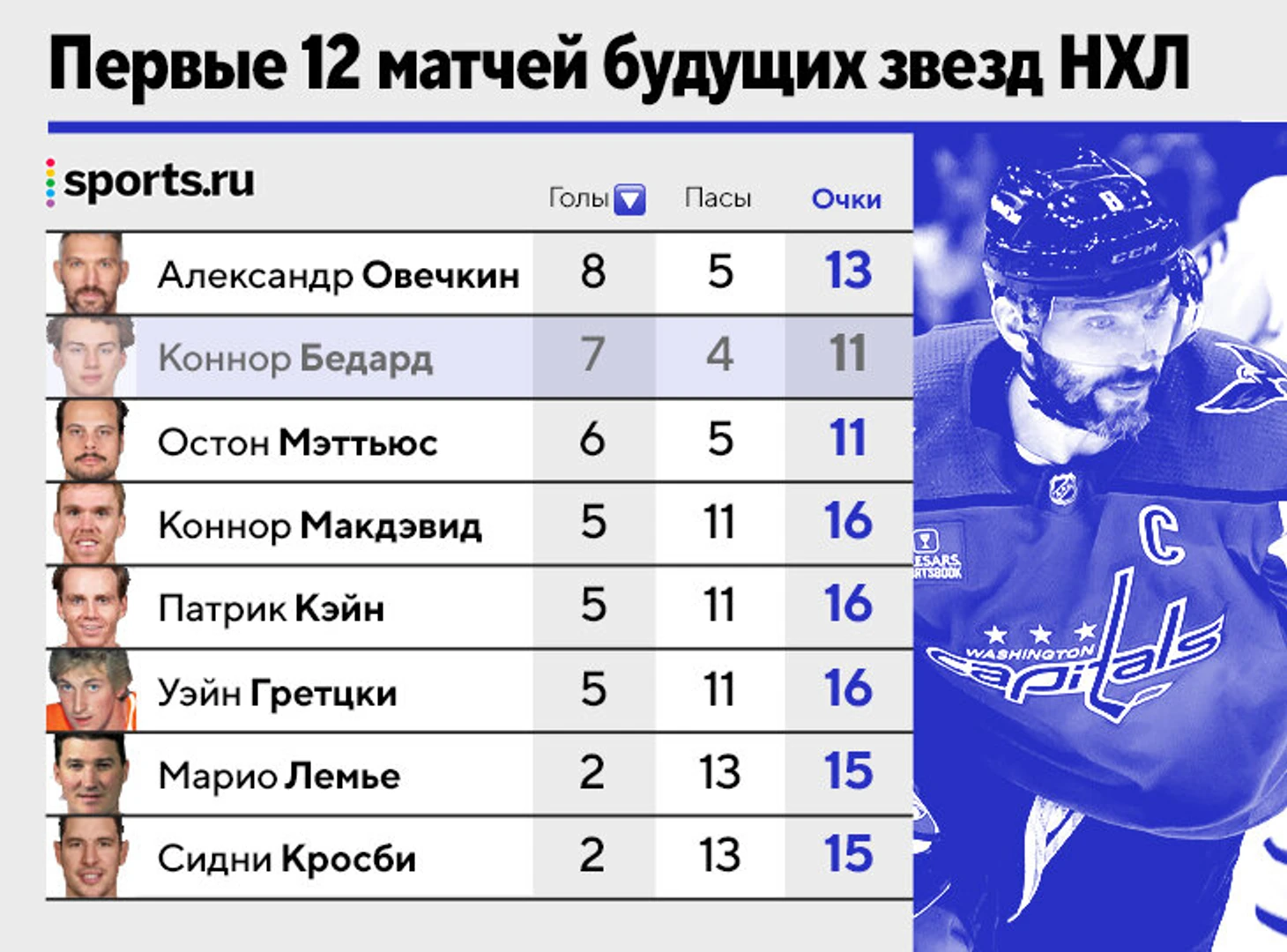 Если же смотреть по очкам, то молодой канадец явно отстает от легенд, хотя в целом идет по весьма неплохому графику, который в итоге должен привести его в этом сезоне к «Колдер Трофи».