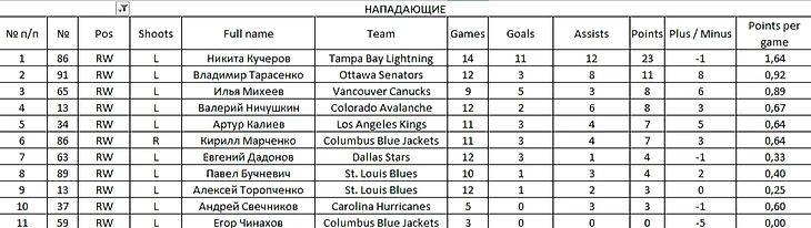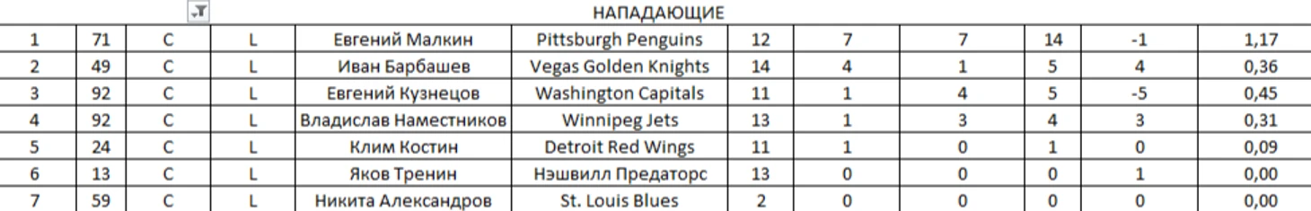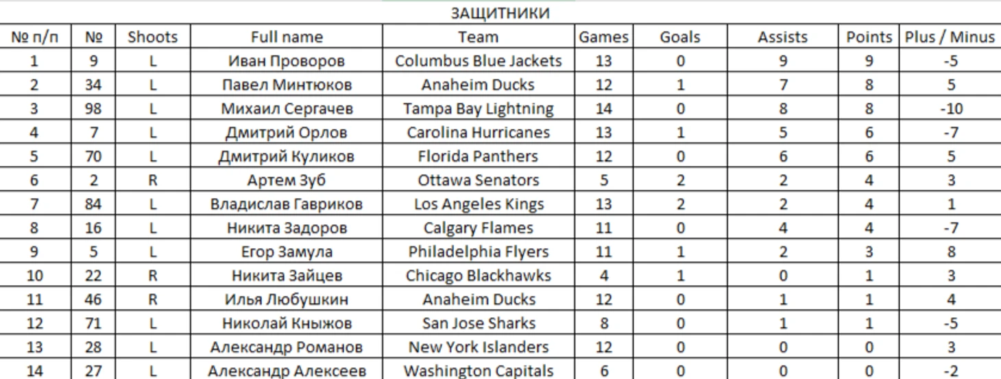Встряхнул в правильную сторону обмен в Коламбус Ивана Проворова. Лидер среди наших защитников по очкам своими передачами очень круто расчерчивает комбинации партнерам. Мог бы стать лучшим защитником месяца, но слишком сильно уступил Минтюкову по +/-.
