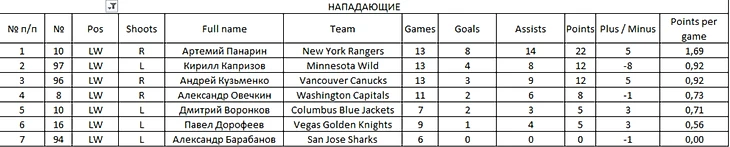 Честно говоря, всегда считал, что у нас в НХЛ больше крайних нападающих, но оказалось, что российских левых крыльев столько же, сколько и центров. Однако, с учетом качества игроков для формирования сборной проблем не возникает: Панарин, Капризов, Овечкин, Кузьменко – просто вау!
