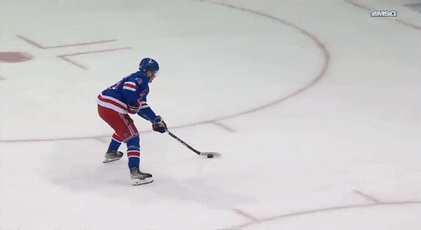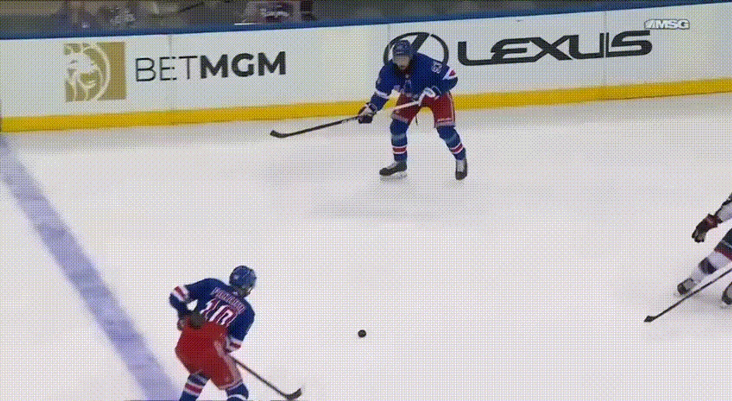 За 11 секунд до финальной сирены «Рейнджерс» «горели» 2:3. Панарин переместился с фланга на синюю линию и низким набросом доставил шайбу до партнеров на пятаке, через мгновение Лафреньер оформил дубль.