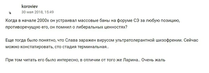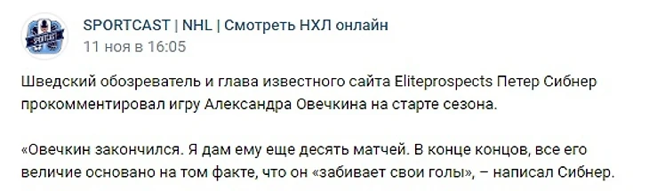 Впрочем темой Овечкина этот бывший журналист не ограничился. Крайне осуждаем.