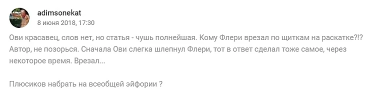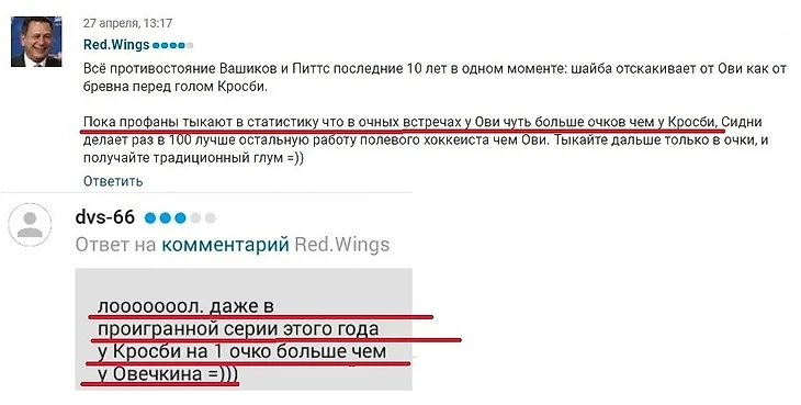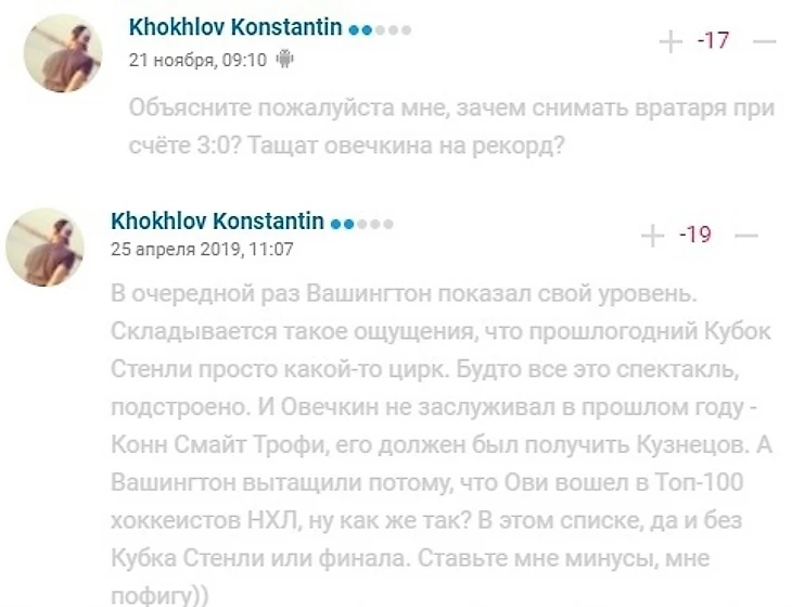 Данные комментаторы далеко не одиноки: набрасываясь на Овечкина, предварительно не проверив, а не ударил ли он попутно по досье любимчика? Присмотритесь к таким.