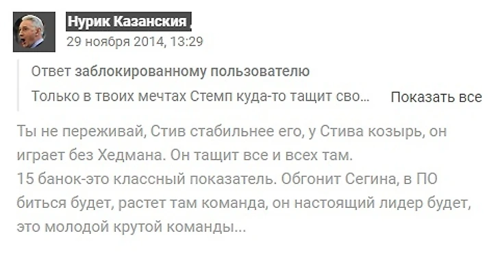 Когда у «верного пса мистера Рочестера» в любимчиках человек ни разу не набравший даже +20 полезности за сезон даже на пике карьеры (Малкин), стоит ли цепляться к +/- других? Не хватает логики не подставлять своих же кумиров?