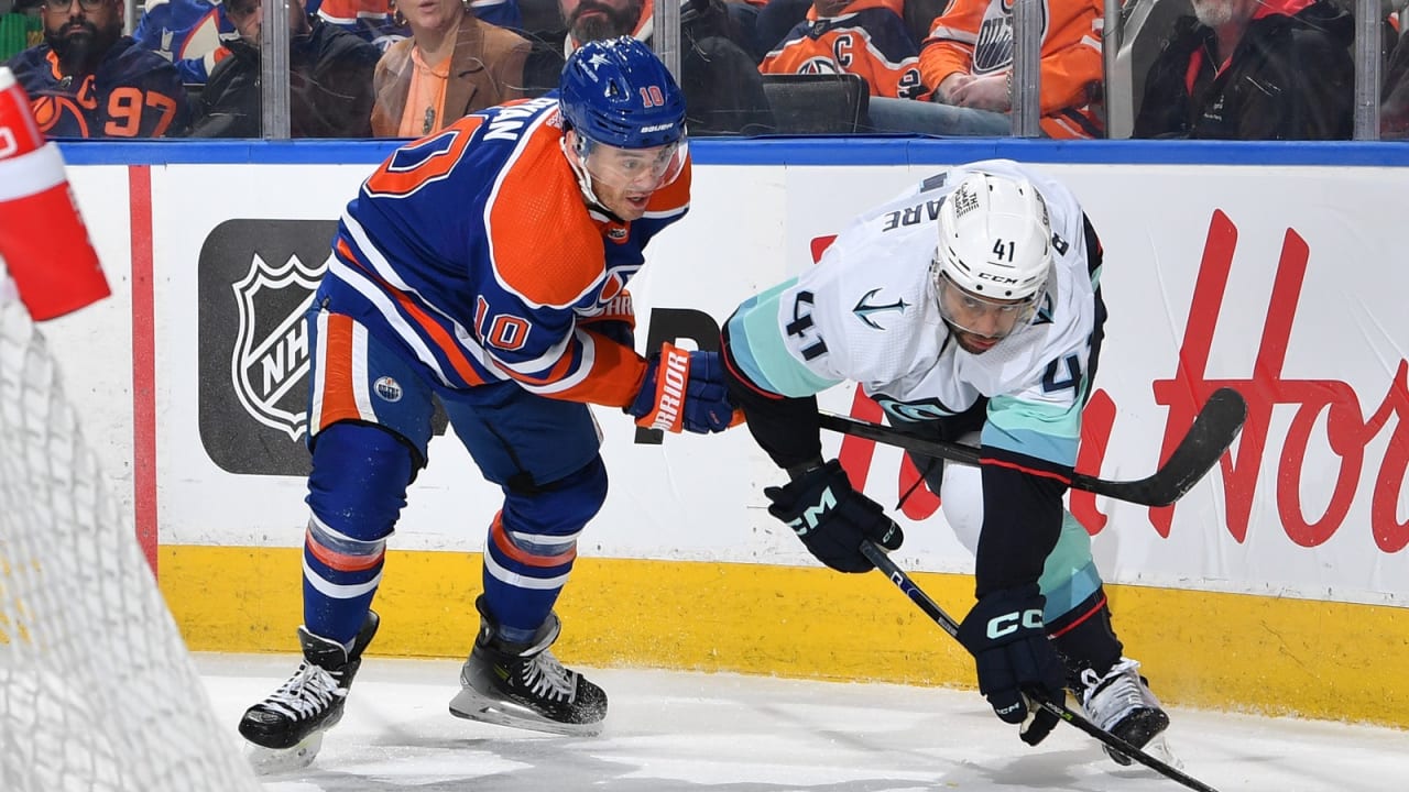 «Эдмонтон Ойлерс»-«Сиэтл Кракен» 4:3 (ОТ). Эвандер Кейн в овертайме принёс победу хозяевам. Эвандер Кейн забросил 3 шайбы, Эван Бушар отдал 3 результативные передачи, Леон Драйзайтль отдал 2 результативные передачи, Стюарт Скиннер отразил 33 броска. «Нефтяники» выиграли 3 игру подряд.
