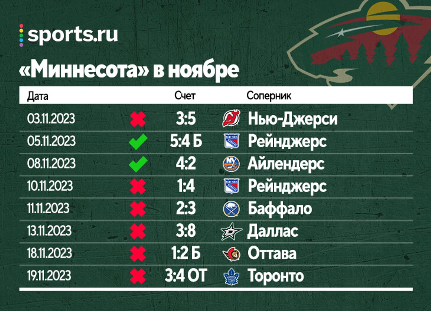 Если с «Торонто», в целом, все в порядке, то «Миннесота», кажется, попала в яму. «Уайлд» проиграли пятый матч подряд – а пока в ноябре у команды лишь две победы.
