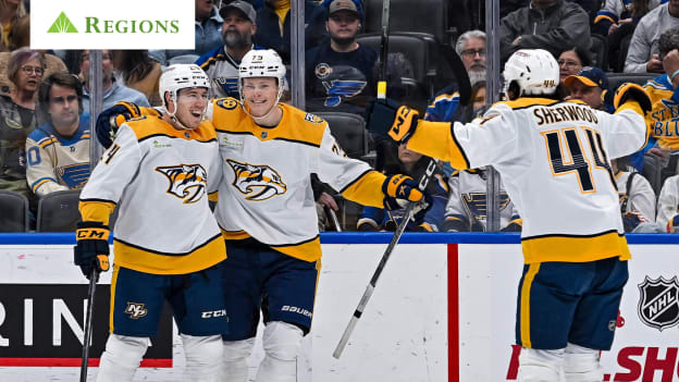 "Сент-Луис Блюз"-"Нэшвилл Предаторз" 3:8. Филип Форсберг и Люк Эвангелиста набрали по 3 очка (2+1), Кифер Шервуд также набрал 3 очка (1+2), Александр Каррьер отдал 2 результативные передачи, Яков Тренин забросил одну шайбу, Кевин Ланкинен отразил 36 бросков. У хозяев Павел Бучненвич и Роберт Томас набрали по 2 очка (1+1). В первом периоде Брейден Шенн подрался с Джереми Лоузоном. "Хищники" выиграли 3 игру подряд.