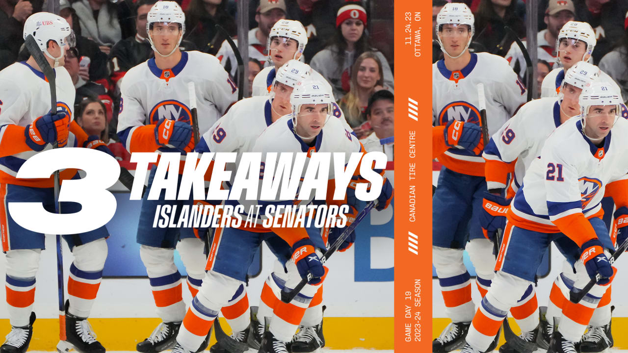"Оттава Сенаторз"-"Нью-Йорк Айлендерс" 3:5. Кайл Палмьери и Оливер Вальстрём набрали по 2 очка (1+1), Брок Нельсон и Александр Романов отдали по 2 результативные передачи, Семён Варламов отразил 28 бросков. У хозяев Дрэйк Батерсон забросил 2 шайбы, Тим Штютцле набрал 2 очка (1+1), Матье Джозеф отдал 2 результативные передачи. "Островитяне" выиграли 3 игру подряд.