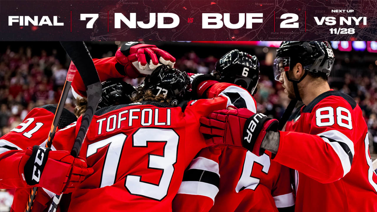 "Нью-Джерси Дэвилз"-"Буффало Сэйбрз" 7:2. Хозяева в первом периоде забросили 4 шайбы. Тайлер Тоффоли забросил 2 шайбы, Александр Хольтц с Ондржеем Палатом, Доусоном Мерсером и Люком Хьюзом набрали по 2 очка (1+1), Йеспер Братт с Дуги Хэмилтоном отдали по 2 результативные передачи, Витек Ванечек отразил 10 бросков.