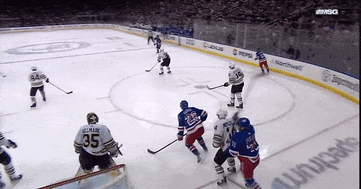 Во втором периоде «Рейнджерс» играли на отложенном штрафе, поэтому вратарь Куик заменился на шестого полевого. Розыгрыш получился: Панарин классно выкатил Винсенту Трочеку. С его броском голкипер «Бостона» справился, а с добиванием Джимми Веси – нет.