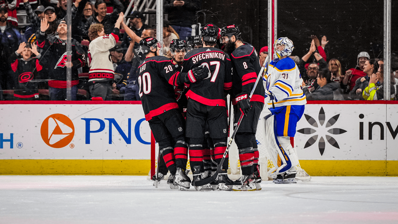 "Каролина Харрикейнз"-"Буффало Сэйбрз" 6:2. Хозяева во втором периоде забросили 3 шайбы. Себастьян Ахо забросил 2 шайбы, Теуво Теравайнен набрал 2 очка (1+1), Андрей Свечников с Мартином Нечасом, Брентом Бёрнсом и Джейкобом Славином отдали по 2 результативные передачи, Пётр Кочетков отразил 20 бросков. В 3 периоде Джек Друри подрался с Коннором Клифтоном.