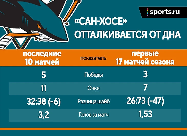 «Сан-Хосе» даже удалось оттолкнуться от последнего места в лиге – хотя казалось, что после такого старта команда обречена. При этом не факт, что такой подъем устраивает руководство, которое стремится получить самые высокие драфт-пики в момент перестройки. Но как тут запретишь выигрывать, если команда способна на такие камбэки?