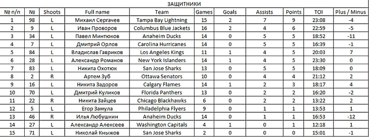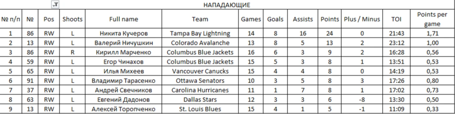 Хороши и Кирилл Капризов (23 очка в 25 играх – должен еще добавить) с Дмитрием Воронковым (14 в 23, на официальном сайте НХЛ он все-таки левый крайний, а не центр).