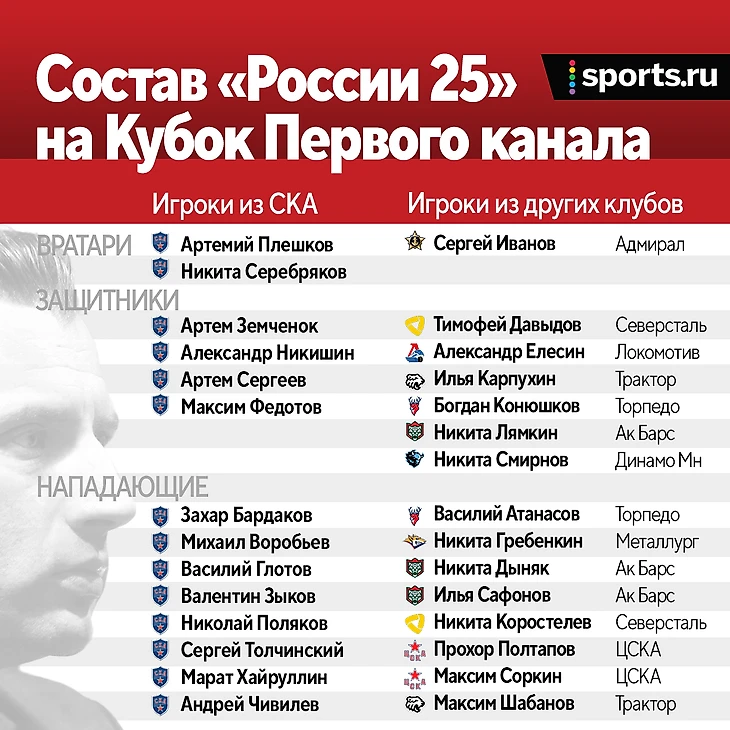 ФХР сообщила, что вратарь Даниил Исаев, защитники Сергей Телегин и Никита Евсеев, нападающие Николай Коваленко, Павел Порядин и Николай Голдобин не приедут на турнир в Санкт-Петербурге. Официальное объяснение – одно на всю шестерку, но и оно и максимально расплывчатое: «из-за повреждений и других причин».