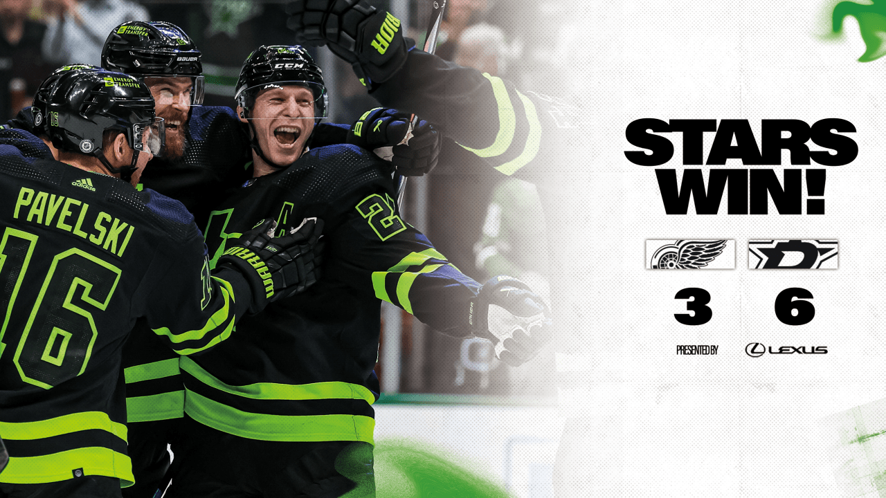 «Даллас Старз»-«Детройт Ред Уингз» 6:3. Миро Хейсканен набрал 3 очка (2+1), Джейсон Робертсон и Эса Линделл набрали по 2 очка (1+1), Сэм Стил и Руп Хинтц отдали по 2 результативные передачи, Джек Оттинджер отразил 27 бросков. У гостей Шейн Гостибер отдал 2 результативные передачи.