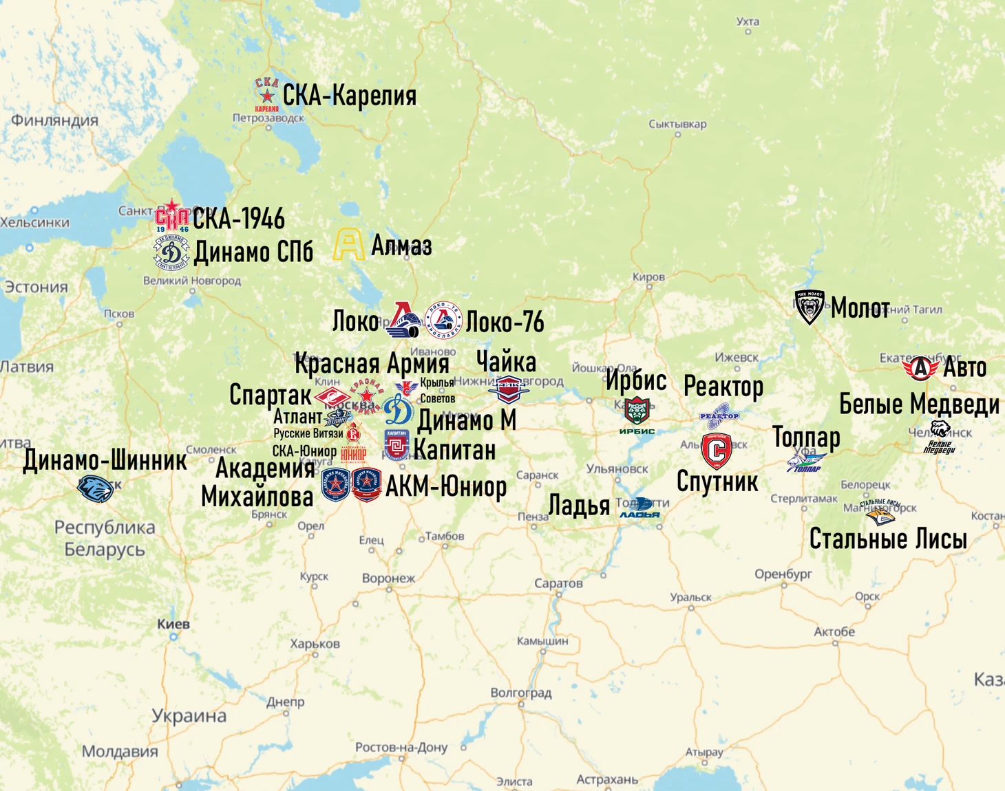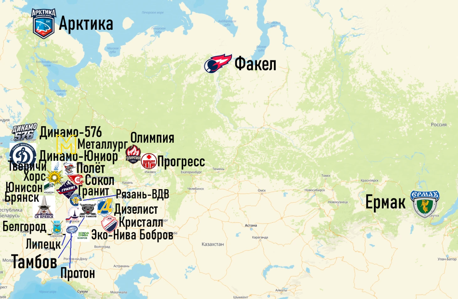 Вы просто посмотрите на это скопление команд в центральной части России, и как сиротливо в сторонке расположились «Арктика», «Факел» и «Ермак».