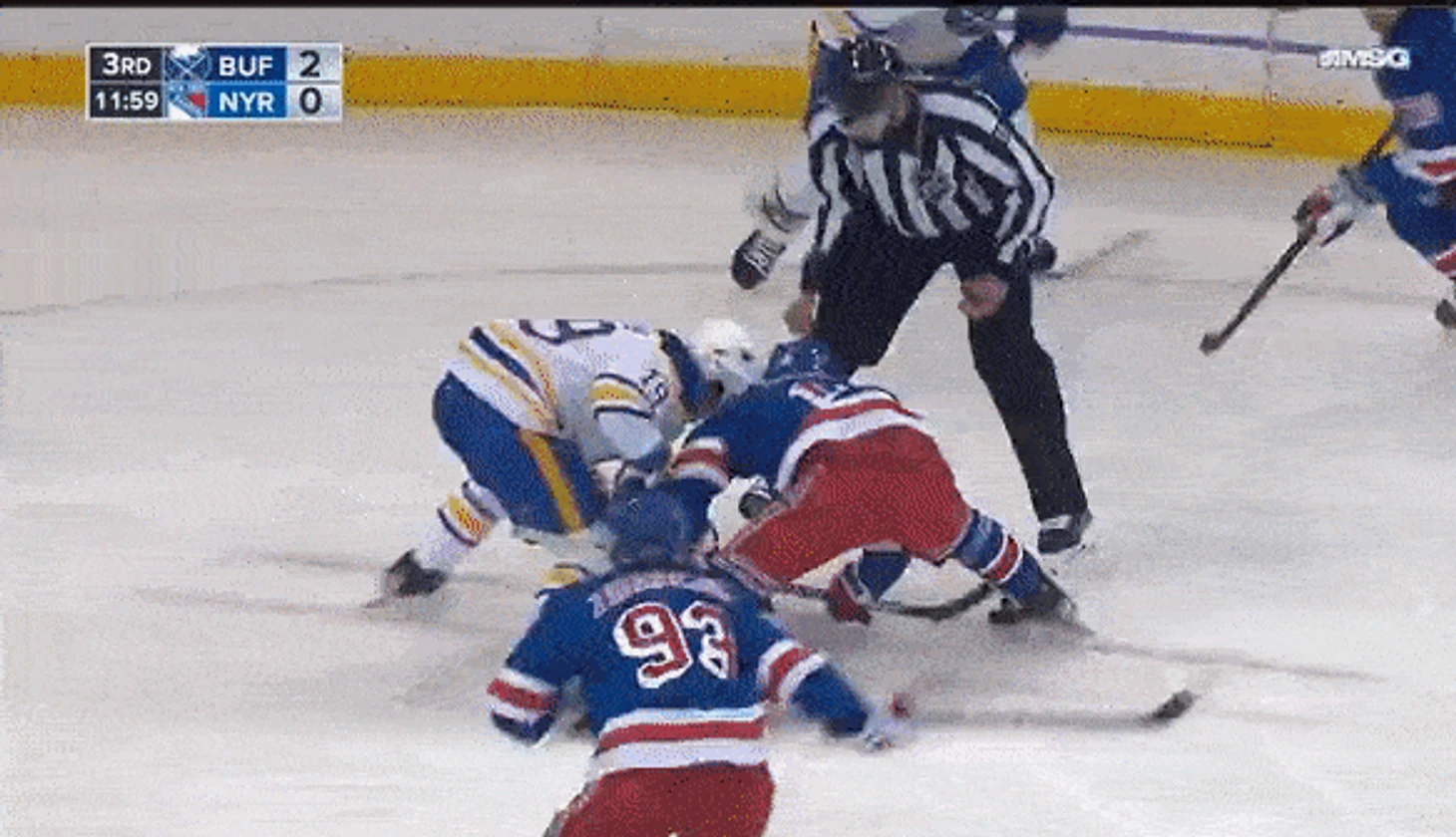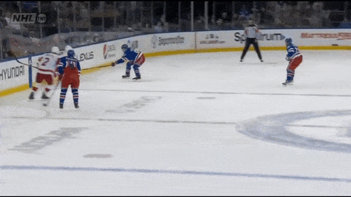 Кажется, Панарин не сделал ничего особенного – но ощущение ошибочное. «Рейнджерс» и так в большинстве, а тут еще и двое игроков «Баффало» вышло на Артемия, а оставшиеся двое также сместились на левую половину льда. Естественно, Панарин отдал шайбу свободному Эрику Густафссону, тот – еще дальше, на открывшегося на свободном фланге Мику Зибанежада, у шведа отличная позиция и фора по времени, а вратарю «Баффало» Юкко-Пекке Луукконену еще нужно перемещаться – и он использовал момент по полной. К голу привела репутация Артемия как невероятного диспетчера – усиленная персональная защита по нему от «Баффало» оставила двоих защитников на четверых нападающих, и в такой позиции забивать легко.