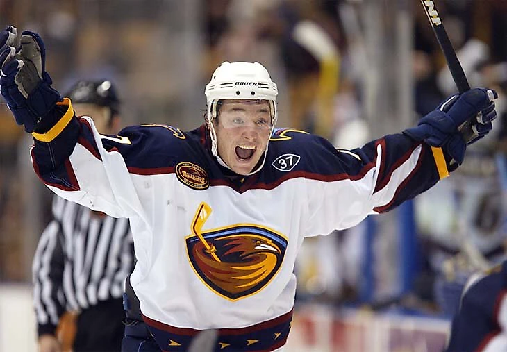 В 18 лет – после первого взрослого сезона, двух ЮЧМ (серебро и золото) и одного МЧМ (ох, не вспоминайте) – он ушел под первым пиком на драфте НХЛ – такого в истории нашего хоккея еще не было. «Атланта» выбрала его первым, оставив Джейсона Спеццу «Оттаве» (закончил карьеру в 2022-м).