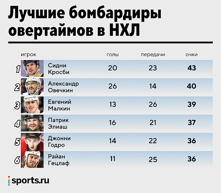 Возможно, кстати, засуха Овечкина как-то связана с тем, что гол 900-й – у него перед юбилеями нередко были паузы. Еще из заметных достижений – чистое второе место в овертаймовской бомбардирской гонке (да, есть и такая). До Сида – всего 3 очка. Правда, в отличие от других статистических соревнований – тут почти все соперники Александра еще играют.