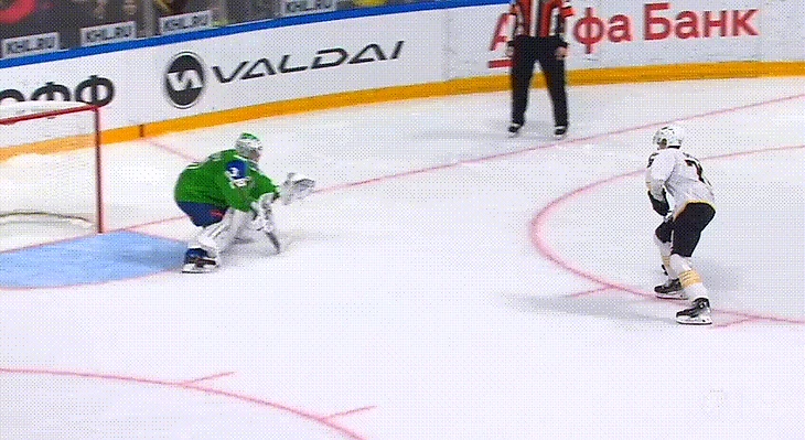 Горшков использовал пятую попытку «Адмирала» при счете 0:1 – если бы не забил, то его команда тут же ушла бы в раздевалку побежденной. Вместо этого Александр набрал рабочую скорость, технично двинул плечами и уложил шайбу над щитком вратаря Александра Самонова.