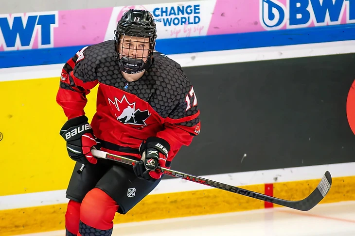 Ещё одной атакующей мощью сборной Канады должен стать Дентон Матейчук — топовый проспект «Коламбуса» (12 пик драфта 2022 года). Леворукий защитник уже пятый сезон проводит в Западной хоккейной лиге, выступая за команду «Мус-Джо Уорриорз», мы вправе рассчитывать от него действительно зрелой игры на этом Чемпионате.