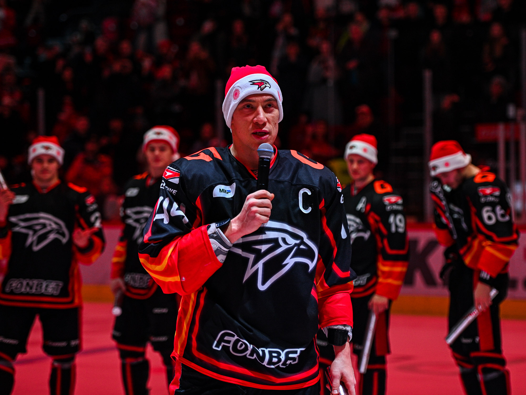 Кстати, небольшой сюрприз для фанатов устроила и команда, сменив шлемы на новогодние колпаки, а капитан Дамир Шарипзянов взял микрофон и сказал очень правильные слова.