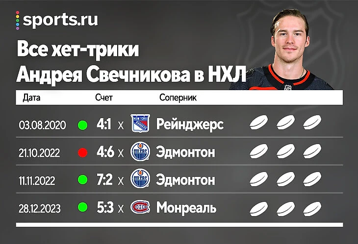 Хет-трик Свечникова – первый за год! Вытащил матч с «Монреалем»