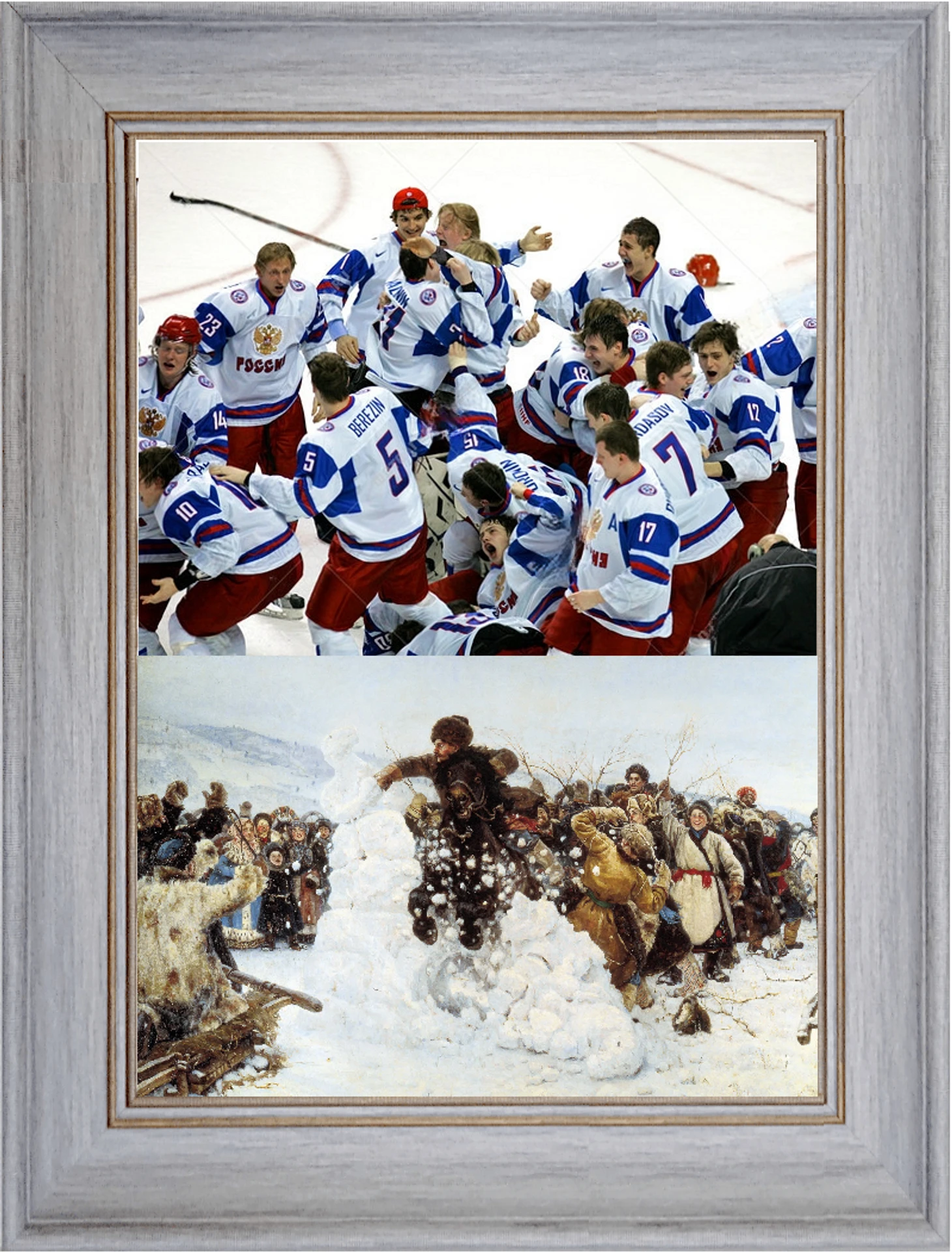 Сделать фотоколлаж и оставить без внимания одну, если не самую известную хоккейную фотографию, было невозможно.